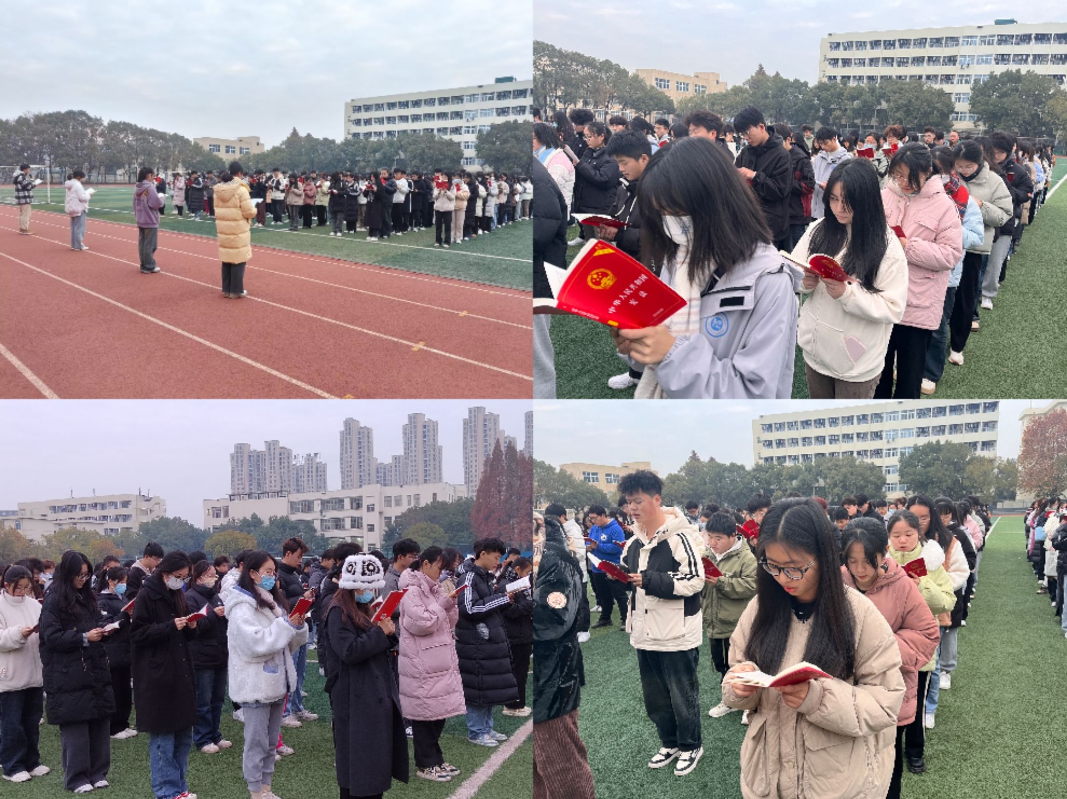 12月4日上午,36365线路检测中心在赭山校区操场以及天门山校区操场分别开展宪法晨读活动,法学专业辅导员李晨冉、蔡志鹏、朱慧参加活动。活动中,36365线路检测中心的同学们手持《宪法》在国旗下庄严诵读,诵读结束后各班思政委员开展了“弘扬宪法精神,争做德法兼修的新时代好青年”的主题宣讲。