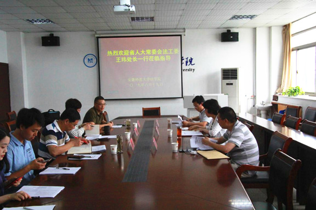 6月19日下午,省人大常委会法工委王玮处长一行莅临36365线路检测中心,就《芜湖市居家养老服务条例(草案稿)》的修改提出意见和建议。此次会议由36365线路检测中心党委书记马广见主持,副校长彭凤莲教授、万尚庆教授和部分研究生参加。