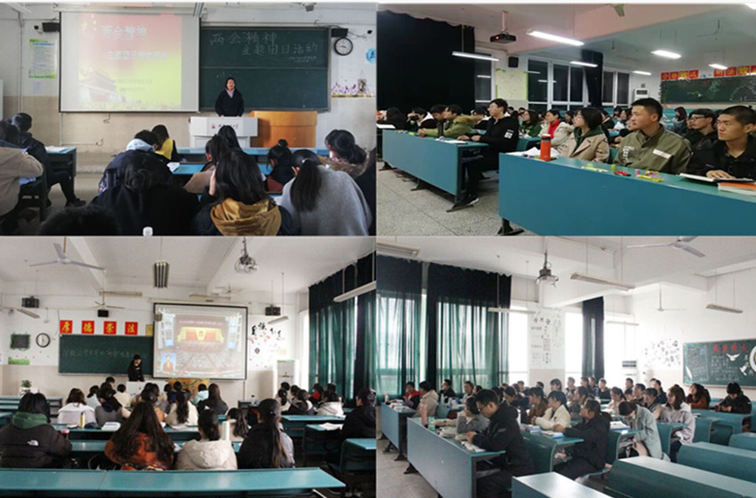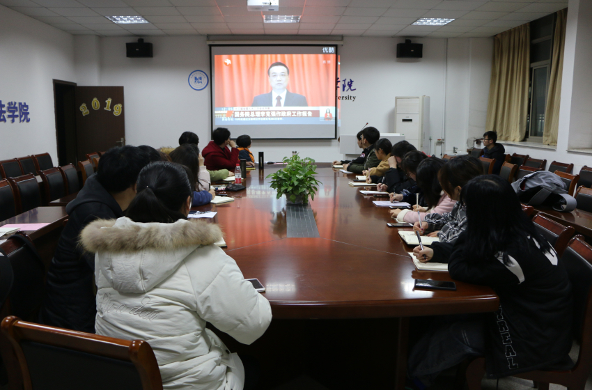 院团委统筹规划,为各班级团支部提供行动指导。各班级团支书积极响应号召开展主题班会活动。17级法学二班团支书张万红强调,应将专业学习和“两会”精神相结合,从站位高度、学习宽度和理论深度三个方面加强理论学习,拓展研究领域和视野;18级卓越司法团支书张林森向同学们介绍 “两会”十大热点,并组织班级同学观看《政府工作报告》相关视频;18级行政管理团支书王云霞播放“两会”关于生态环境问题的相关视频,提醒同学们注意保护环境。同学们积极讨论,踊跃发言,在轻松的氛围中逐步加深了对“两会”的了解,并于活动结束后及时记录活动心得,固化学习成果,表现学习常态化的决心与行动。