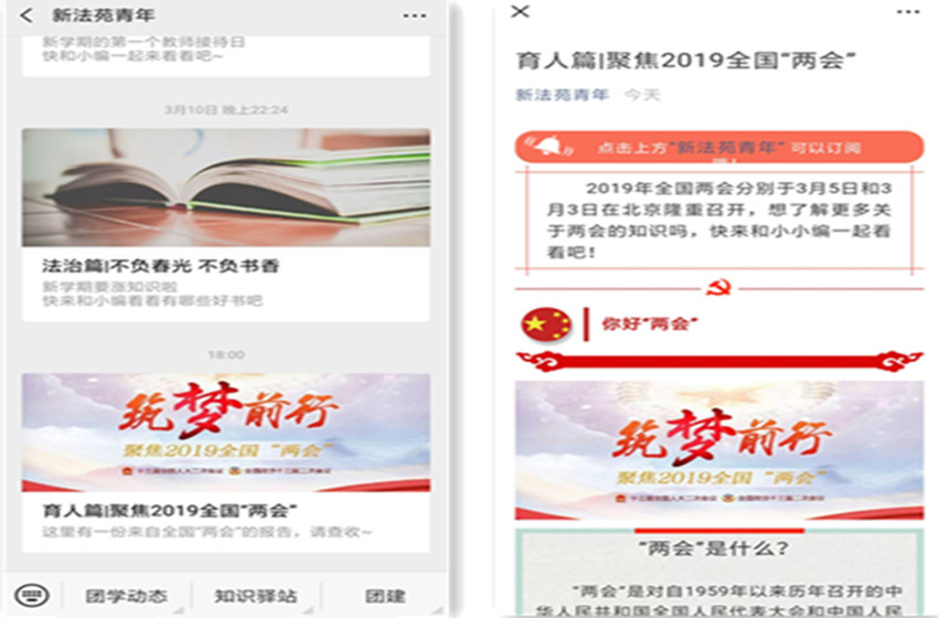 36365线路检测中心注重宣传方式创新,采取班级官Q和学院微信公众号同步宣传的方式,将“两会”热点以图文形式呈现在学生面前。通过官方平台推送消息,鼓励学生积极参与线上交流学习。同学们在讨论中深入思考,加深对“两会”的认识。