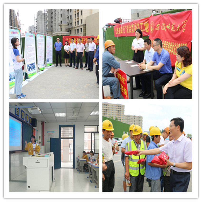 为保证普法实践活动顺利圆满进行,校院高度重视,不但在实践前精心部署、细心指导,而且亲自前往普法实践活动的一线,校党委副书记、校长张庆亮,校党委常委、组织部部长季爱新亲自走进建筑工地,实地观察了解学生的普法活动开展情况,并与学生开展座谈交流。专业老师积极参与指导,团队配有2名经验丰富、业务知识扎实的法学专业老师,全程指导普法实践活动。此外,与律师事务所合作,邀请到上海金茂凯德(芜湖)律师事务所2名著名律师参与到普法实践活动中来,为有需要的普法对象提供更具针对性和实效性的法律服务。