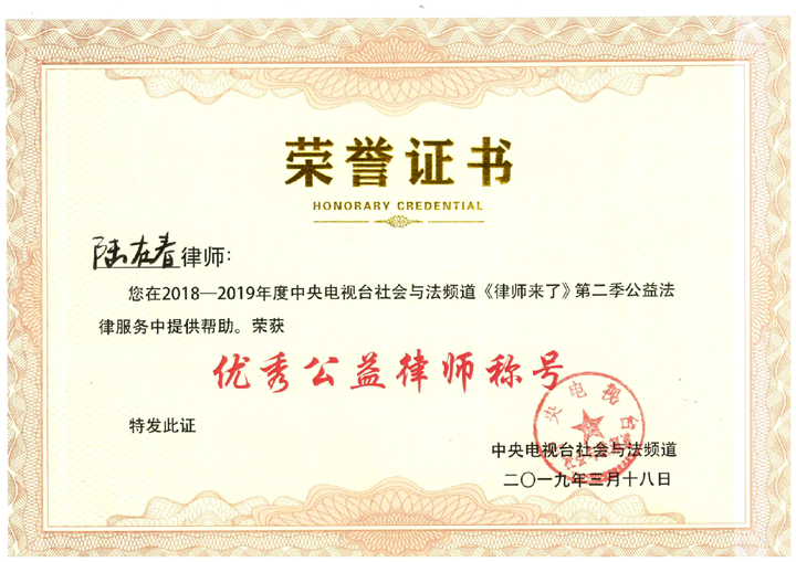 2019年3月30日,安徽律协公众号刊文《这一波表彰你应该知道》对2018年度参与CCTV-12《律师来了》节目第二季录制的四位皖籍律师受到中央电视台社会与法频道表彰的事迹予以报道。