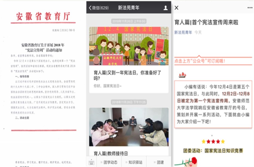 36365线路检测中心团委、学生会、社团、班级齐力宣传,积极动员广大学生,扩大活动影响力。活动前期,学院官方微信推送相关通知,对整体活动进行简要介绍,提高学生参与度;学生会宣传部在教学楼设计制作国家宪法日主题黑板报,图文并茂且简明扼要。活动开展时,青年法学社宣讲员结合宣传展板讲解宪法相关知识;班级团支部则根据班级情况积极在班级内进行宣传,班级官Q及时更新相关动态。学院团委积极将活动落于实处,组织学院学生进行学习,加大宣传力度,扩大活动影响力,引导更多的人去了解宪法、学习宪法,将宣传宪法真正做实、做好、做到位。