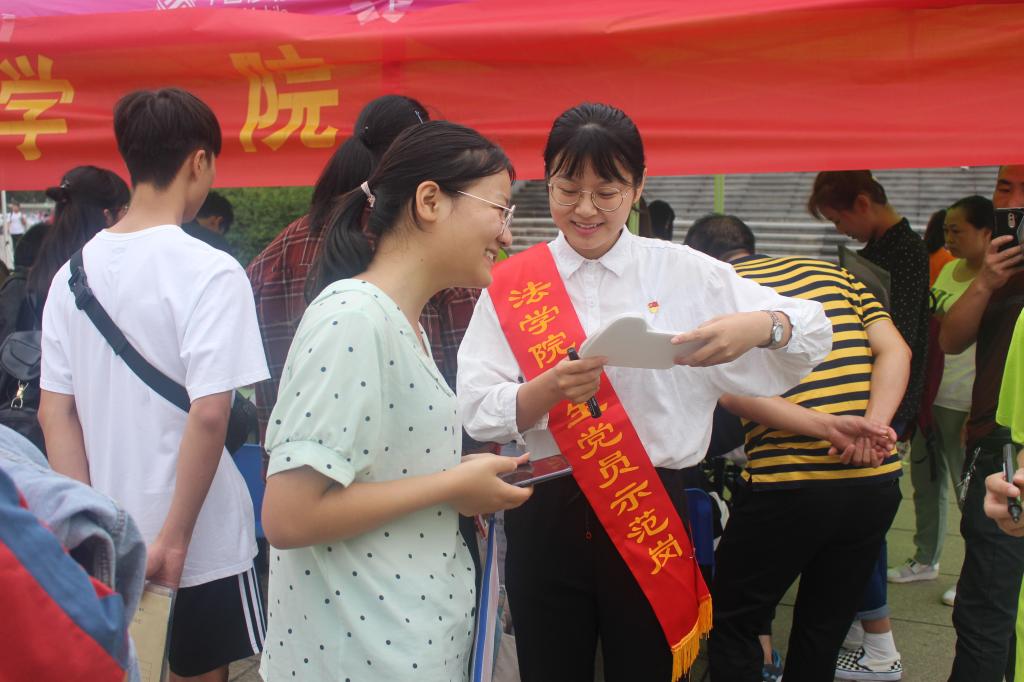 从上午八点到下午四点,新生陆续报道完毕,学生党员们始终坚守在迎新的第一线,他们积极主动、热情阳光的形象为前来报道的学生和家长留下了深刻印象。此次“党员示范岗”的设立,也为法苑学子开展“不忘初心、牢记使命”主题教育吹响了号角,他们将立足学生本职,努力学习增强本领,发挥先锋模范作用,以实际行动践行初心和使命。