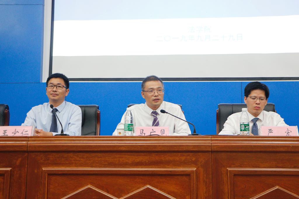 2019级法学专业新生翟耀庭、2019级法学研究生汪传杰代表新生发言,他们满怀期待地讲述了对大学生活的憧憬,将“师大人”的身份作为成长之所在,不忘初心、坚守信仰、脚踏实地、潜心学习;2017级行政管理李宁、2018级研究生时慕天代表老生发言,向大家分享了自己的大学经历,并希望学弟学妹们牢记使命、不怕吃苦,努力成为新时代的弄潮儿,用青春诠释对祖国和师大的热爱。