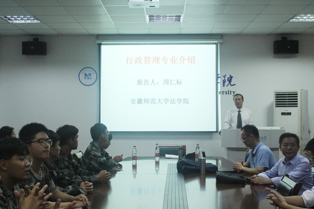 行政管理专业负责人周仁标首先对新生们的到来表示欢迎,他分别从专业概况、培养目标、毕业去向、师资队伍等方面,详细介绍了行政管理专业的特色和优势,他着重强调德才兼备的重要性,鼓励同学们做德才兼备的行政管理人才。在场每位骨干教师都结合自己多年的实践教学经验,为新生们提供了实用的建议,有利于帮助同学们明确学习目标,树立专业信心。