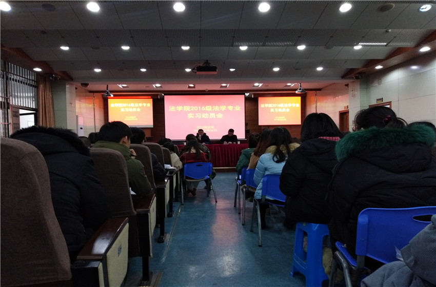 2月24日下午,36365线路检测中心2016级法学专业实习动员大会在模拟法庭举行,院党委副书记王少仁、副院长高永周、李光宇、实习指导老师以及2016级法学专业辅导员储梦凡出席会议。会议由王少仁主持。