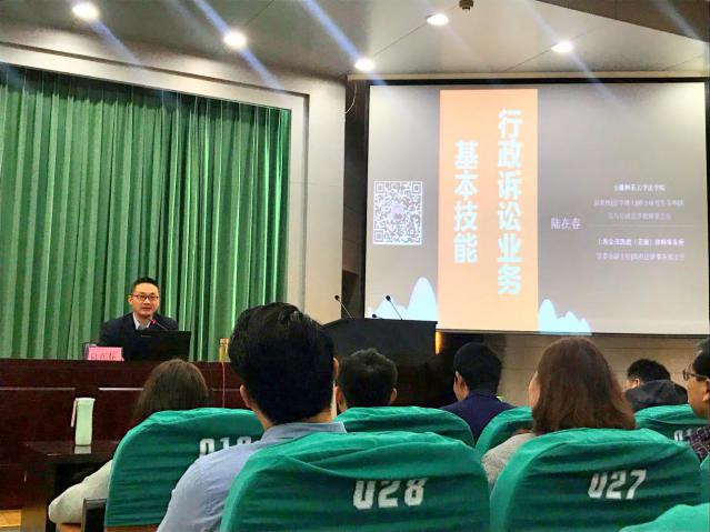 陆在春此次授课从行政诉讼的基本原理与发展脉络讲起,介绍了行政诉讼的实质与主要特征。讲座结合2018年10月30日最高人民法院公布的第一批行政诉讼附带审查规范性文件典型案例,分析了行政行为司法审查的范围、模式与基本规律。在介绍如何代理行政相对人依法维权时,陆在春结合自身实务经验,通过大量案例进行细节比较,帮助学员对于“重复处理行为”“ 过程性行为”与“内部层级监督行为”等进行甄别,加强行政诉讼策略的适法性与经济性;在介绍如何为行政主体提供优质的非诉法律顾问服务与代理政府处理应诉业务时,陆在春直面学科前沿争议,结合自身新近科研成果和办案体会,阐释了行政协议综合识别标准,重点分析了行政主体在行政协议相对方违约时如何履职履约以及相关救济途径选择问题。