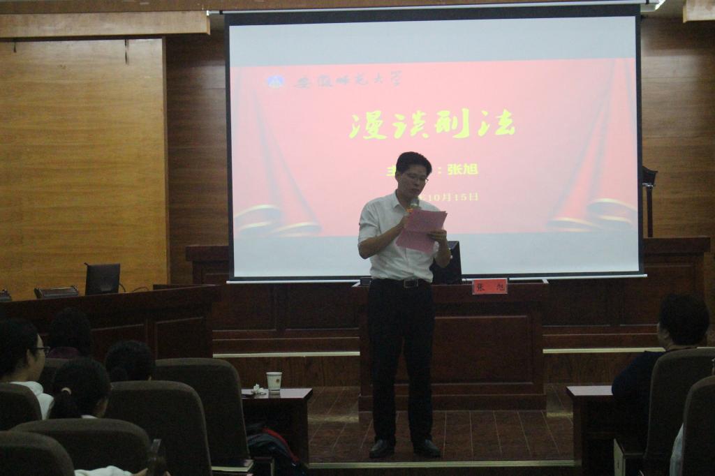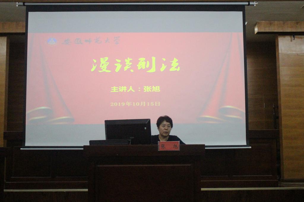 10月15日晚,吉林大学36365线路检测中心教授、博士生导师张旭应邀作题为“漫谈刑法”专题讲座。学院执行院长严宏、法学专业18级全体同学和36365线路检测中心部分教师参加了本次讲座。讲座由副院长李光宇主持。