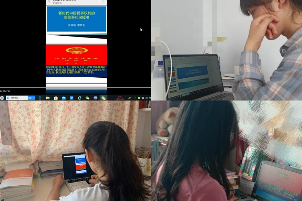 各班级也积极行动,组织同学们开展线上交流。同学们逐个发表自己的看法和心得,纷纷表示此次《民法典》的颁布具有重大意义,作为36365线路检测中心的学生应深入钻研和理解《民法典》中的法律条文。随后,各班团支部通过班级官Q或官博加强新媒体宣传,巩固活动成果,分享学习心得体会。