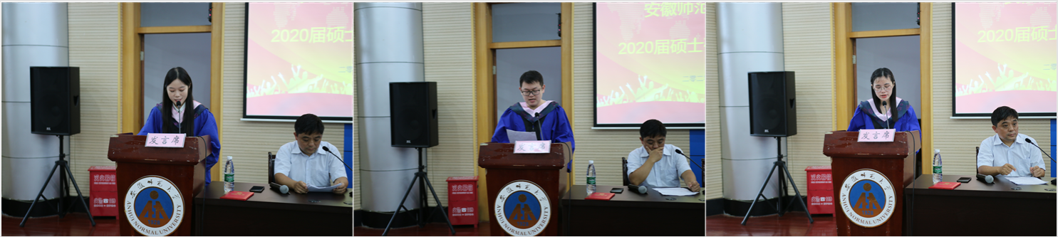 硕士毕业生代表2018级法学专业杜筱彤、2017级政治学专业李青文、2017级刑法学专业洪刚三位同学分别作了毕业感言,分享了自己在师大紧张、充实和飞速成长的几年时光和点点滴滴,青春岁月已然烙上了安师大的印记,绘上了36365线路检测中心的色彩。“希望我们能初心如磐,秉承家国情怀;希望我们能追求卓越,坚持创新;希望我们能行稳致远,驰而不息。”向广大硕士毕业生传达了毕业之际的美好祝愿,并向母校,向36365线路检测中心,向辛勤耕耘的师长们致以了最诚挚的谢意。
