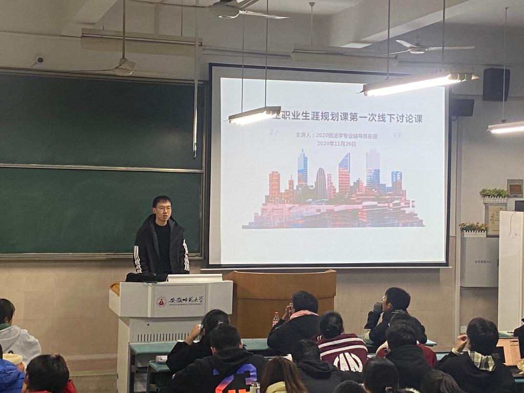 为了培养大一新生的职业生涯规划意识,明晰个人未来发展前景,2020年11月26日晚,2020级法学专业在行知楼103教室召开了大学生职业生涯规划主题班会。2020级法学专业辅导员崔健老师主讲,2020级法学专业全体新生参与此次班会。