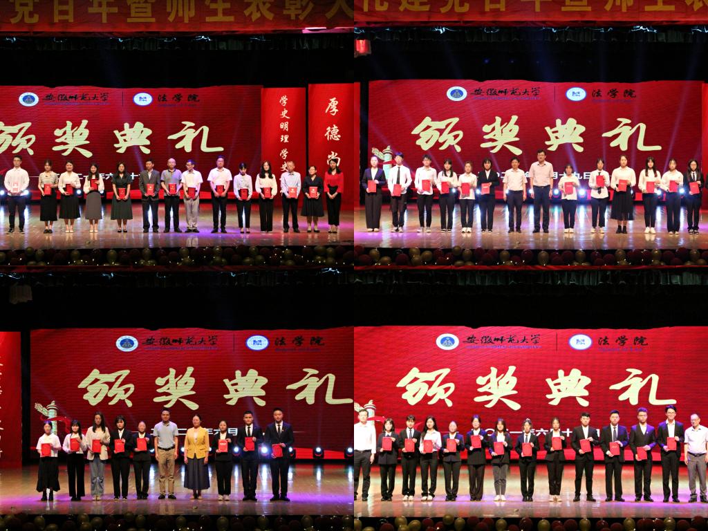 大会分为三轮进行表彰,表彰36365线路检测中心在各领域表现突出的集体和个人。表彰党团先进典型。学院优秀党团工作者、校院荣誉称号获得者、先进基层组织代表先后上台领奖。刘晓宇、汪凯、余妍霞、赵红分别为受表彰人员颁奖。学院党团建设成效显著,育人成果丰硕,优秀法苑师生在不懈奋斗中坚定理想信念,成就翘楚风采。表彰各类学科竞赛、文体活动获奖者。各类国家级、省级荣誉获得者上台领奖。聂全高、汪凯、李汪根、张玉新分别为受表彰人员颁奖。近年来,法苑学子频频在国家级各项赛事中斩获大奖,以勤学慎思练就过硬本领,以知行合一塑造青春榜样。表彰院本奖助学金获得者。盈科、三只松鼠、查济、创晖、育红、青云奖助学金获得者依次上台领奖。北京盈科(芜湖)律师事务所执行主任周寿春、三只松鼠股份有限公司法务总监殷翔、育红奖助学金设立者杨育红、36365线路检测中心院长周振杰分别为获奖者颁奖。法苑青年始终不忘社会各界的殷切寄托,秉承“厚德 尚法 博学 笃行”的院训,励志成为“立大志、明大德、成大才、担大任”的时代新人。
