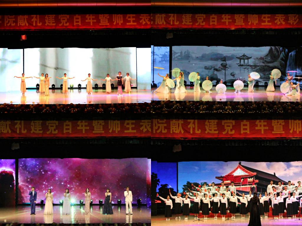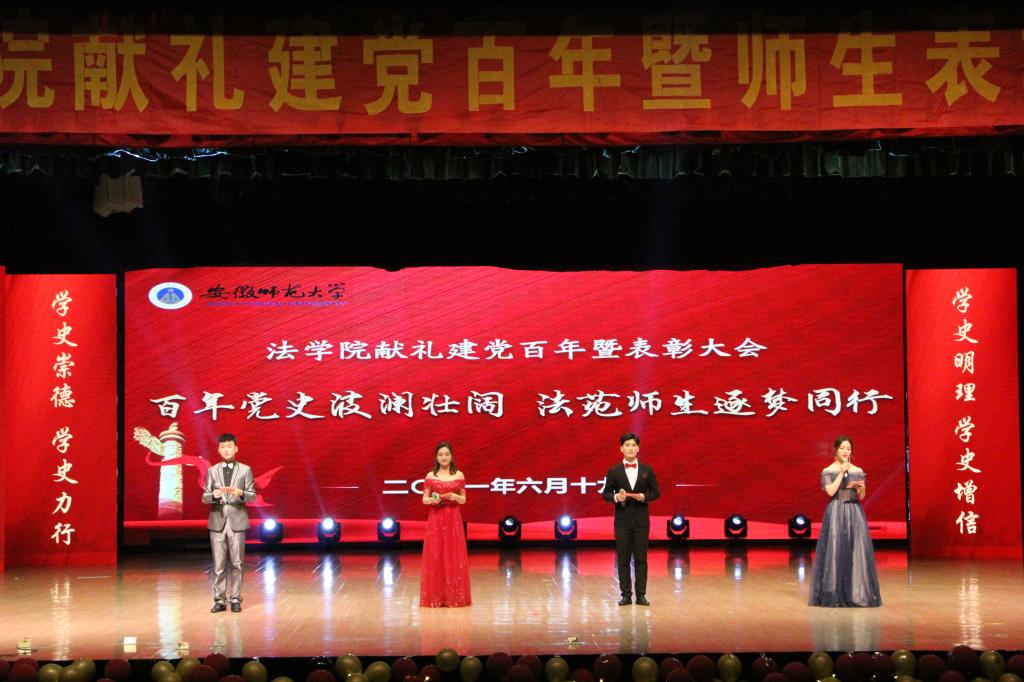 形式多样的节目表演穿插于各轮表彰环节中,尽显法苑学子多才多艺的青春风采。古典舞《流光飞舞》舞出含苞待放的青春之韵,将观众带回烟雨江南,眼前呈现出一幅“土膏欲动雨频催,万草千花一饷开”的栩栩画卷。歌曲串烧《少年行》词调激情昂扬,少年一行岂能鲜衣怒马坦途始终,唯有乘风破浪、历尽千帆才能航向梦的彼岸。爵士舞《舞动青春》节奏明快、动感十足,混合前卫的青春气息,将会场氛围推向高潮。诗朗诵《共话脱贫感党恩,昂首奋进新时代》把脱贫攻坚的战役化作穿越百年的时代强音,彰显一代代共产党人凭愚公移山之志诠释的初心使命。歌伴舞《生命之河》歌声悠扬、舞姿曼妙,体现了不同时代的青年在历史的长河中传承使命,建设祖国,服务人民。大合唱《不忘初心》旋律壮阔、饱含深情,使在场观众领会到中国共产党人前赴后继为人民谋幸福、为祖国谋复兴的决心,每一句歌词的起承转合都是法苑师生对建党百年的深情献礼。