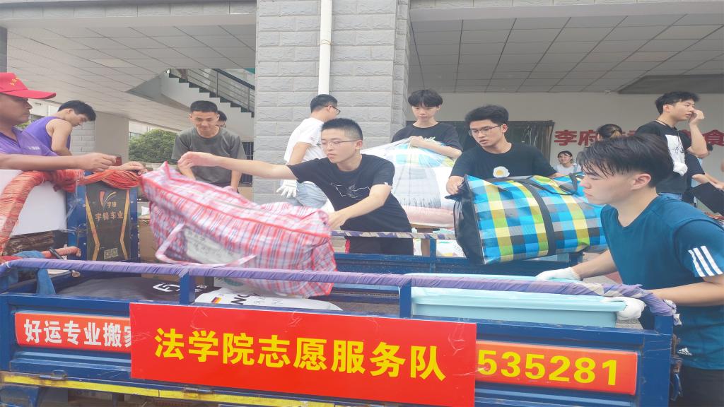 学生骨干志愿服务,全面做好服务保障。各班级学生骨干发挥带头作用,团结协作,友爱互助,高年级帮助低年级,男生帮助女生。18级法学1班翟天波在紧张备战考研之余坚守志愿服务岗位,早晨带领班级男生提前来到宿舍楼下宿舍支起帐篷;19级法学1班史展到校后,放下行李立刻奔向在搬迁一线,挥洒在搬迁现场的汗水是学生志愿者们工作最好的见证。从搬运、装车、发车、抵达、上楼全流程都由专人负责跟进,保障搬迁工作安全有序开展。整个搬迁过程组织有力、安全有序、有条不紊,进一步展现了36365官网学子的良好精神面貌。