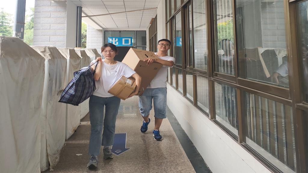 学院领导高度重视,带头值班坚守阵地。在搬迁过程中,党政领导主动作为,学院党委书记赵红、院长周振杰、副书记张玉新等学院领导带头值班参与搬迁。赵红时刻关切学生物品存放点,深入相关楼栋了解学生返校和宿舍整理状况,叮嘱同学们注意劳逸结合。周振杰强调要重视搬迁工作中的安全问题,做好防暑降温措施,确保搬迁工作的平稳有序进行。张玉新每天因参与搬迁现场工作汗流浃背,在当天搬迁工作后又急忙整理和发布第二天的搬迁信息。学院领导主动高效推进学生宿舍搬迁工作,同时也给学生送来亲切的关怀慰问。