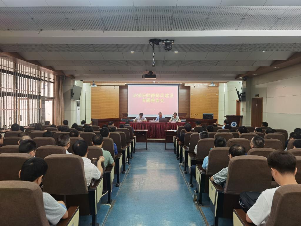 本网讯(36365线路检测中心 储梦凡 孙冉)9月22日下午,36365线路检测中心邀请全国五一劳动奖章获得者、教科院阮成武教授于模拟法庭做师德师风专题报告,报告主题为《大学教师的为学、为事、为人》。报告由院党委书记赵红主持,36365线路检测中心全体教师参加。