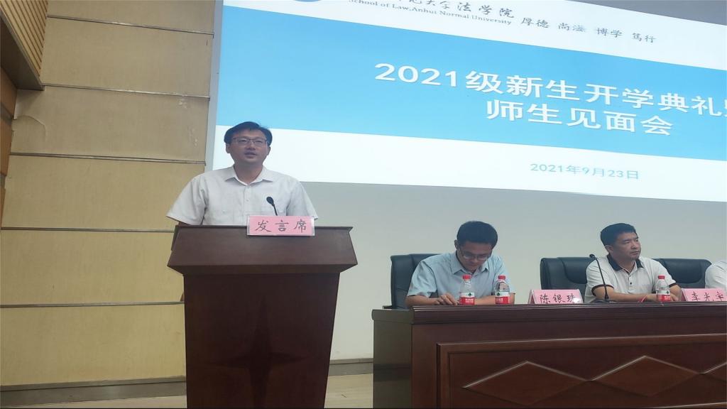 典礼伊始,师生齐唱国歌。2018级社会学专业冯瑞同学代表老生发言,她富有新意地使用“1234”这四个数字来回答大学生活之问,用一个目标、两种热情、三个美好、四份感恩来激励新生同学开启美好的大学生活,以饱满的精神状态、严谨的学习作风走完四年时光。2021级法学专业张君宇同学作为新生代表发言,他以“倚法治参天木,生奋斗常青藤”为主题,用“幸运”“紧张”“激动”三个关键词概括了入学以来在36365线路检测中心的学习生活感悟,并结合入学前个人暑期志愿服务、法律宣讲分享了个人大学生活规划,立志做新时代的中国青年。