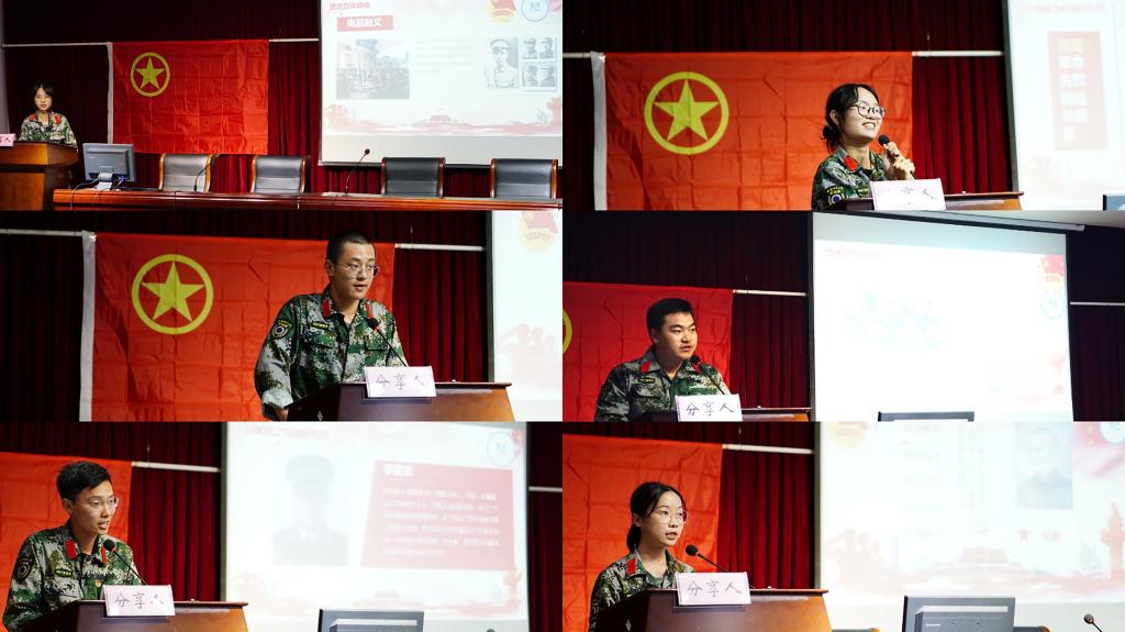 随后,胡艺艺等六位同学们以“故乡的英雄”为主题分享了家乡的红色故事。来自江西的胡艺艺同学从“八一建军碑”谈起,带领我们共同回忆了“武装斗争第一枪——南昌起义”的历史事件;来自陕西的高光瑞同学向我们介绍了确定建立抗日民族统一战线的瓦窑堡会议;来自安徽合肥的张君宇同学向我们展现了李克农将军在隐秘战线上奋斗的波澜壮阔的一生;来自广州的区晓儿同学向我们介绍了率领抗日义勇军打破“日军不可战胜”的神话的吴勤战士;来自安徽芜湖的雍肖伟杰同学围绕在遵义会议上投出“关键一票”的故事向我们分享了王稼祥先生的生平事迹;来自湖南的李响响同学带领我们领略了左权将领“虎帐运筹神莫测,太行立马气如虹”的风采以及“匡复有吾在,与人撑巨艰”的蔡和森先生在思想上的辉煌成就。