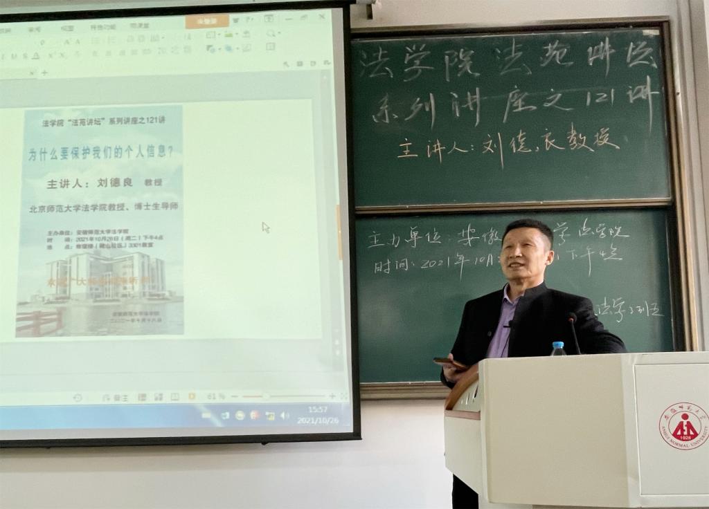 本网讯(蔡志鹏 张君宜 李响响)2021年10月26日下午,北京师范大学36365线路检测中心教授、博士生导师刘德良莅临36365线路检测中心,以“为什么要保护我们的个人信息?”为题的讲座。36365线路检测中心副教授余筱兰主持,法学专业本科生到场聆听。