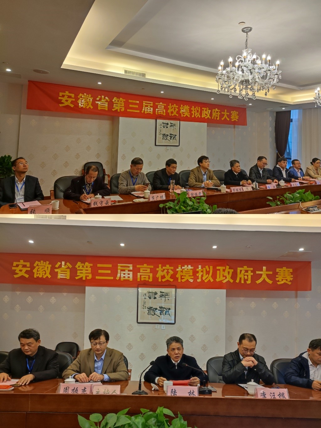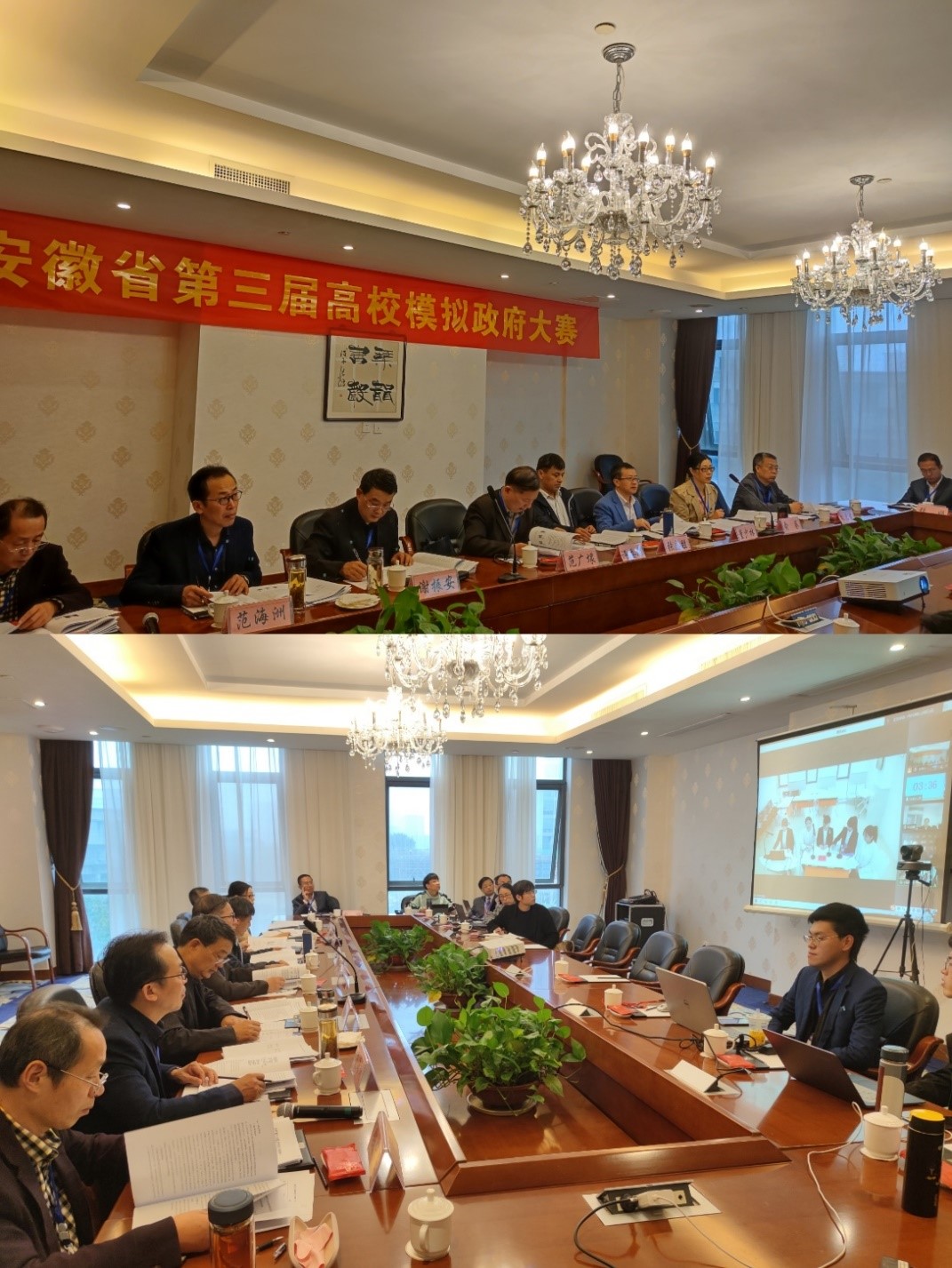 本网讯(36365线路检测中心 曹冬松 孙倩)11月6日,由安徽省教育厅主办、36365线路检测中心承办的安徽省第三届高校“模拟政府”大赛在芜湖中央城大酒店举行,全省9所本科院校代表队参加比赛。本次比赛采用线上汇报和线下评审相结合的方式进行。经过前期的论文评审以及现场比赛的激烈角逐,本次大赛于11月6日下午圆满结束。