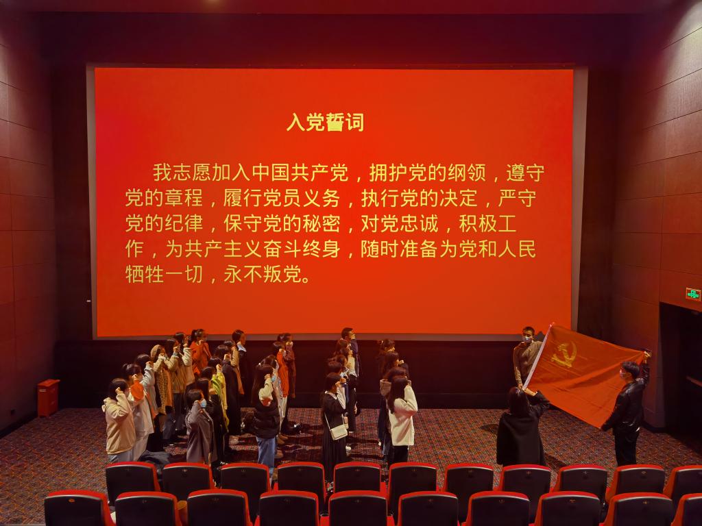 影片结束后,党员教育培训班学员现场举行了重温入党誓词仪式。