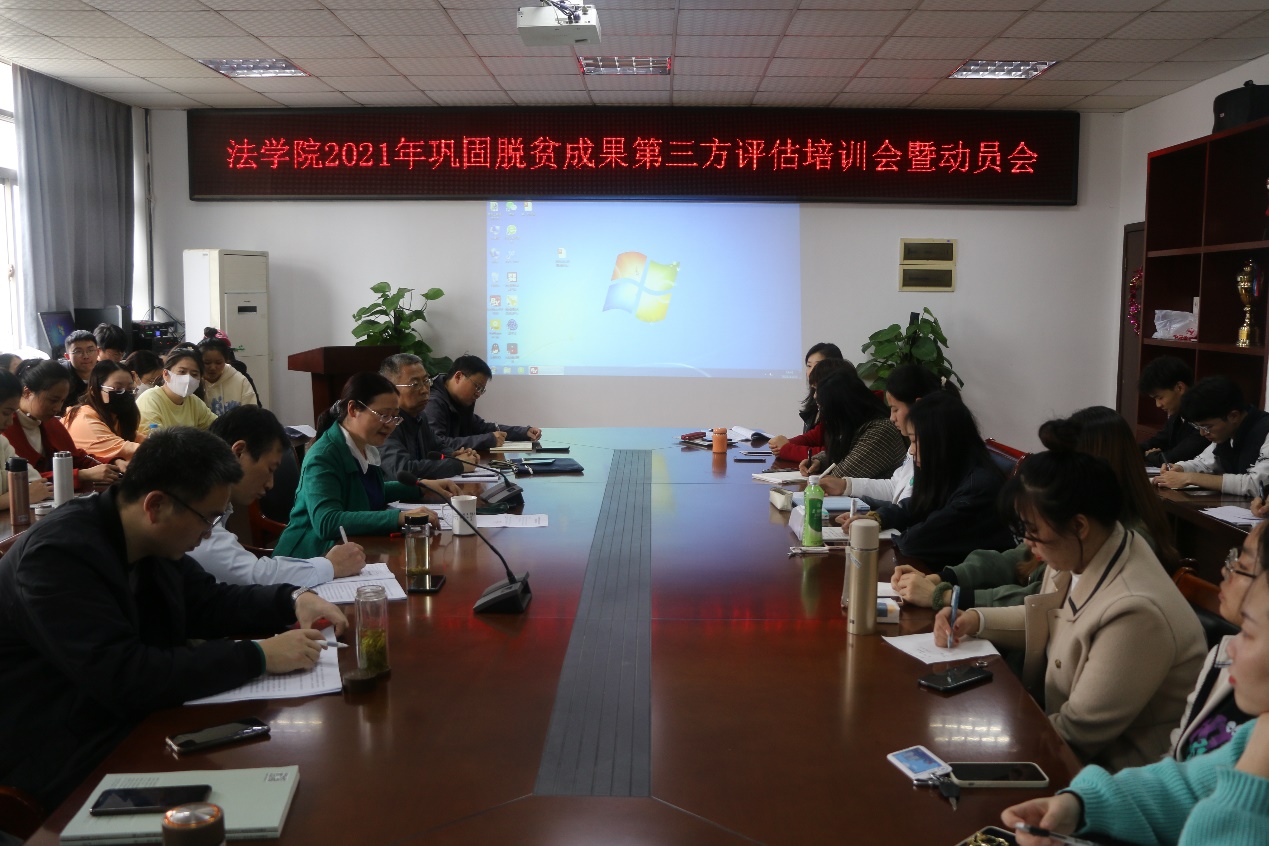 本网讯(36365线路检测中心 曹冬松 王孟德)11月20日下午,根据学校统一部署,36365线路检测中心于院行政楼会议室成功召开2021年巩固脱贫成果第三方评估培训暨动员会。学院党委书记赵红出席会议并作动员讲话。全院参与本年度第三方评估的师生参加会议,会议由院评估组组长朱启友副教授主持。