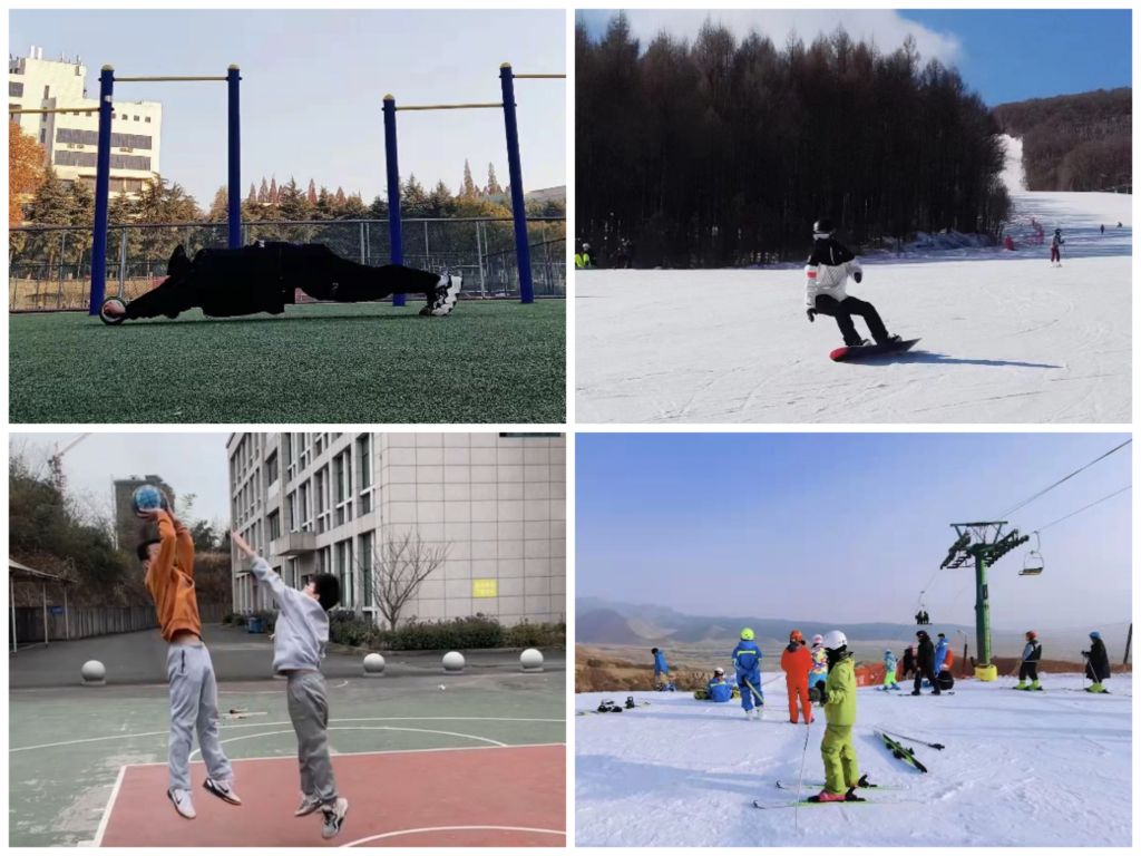 坚持运动,强健体魄:掌握一项体育技能。强健的体魄是进行学习生活的基础,假期中同学们根据自身兴趣爱好积极参与滑雪、长跑等各样体育锻炼活动,用实际行动锻炼身体,喜迎北京冬奥会。