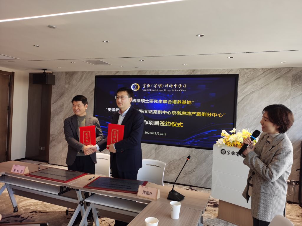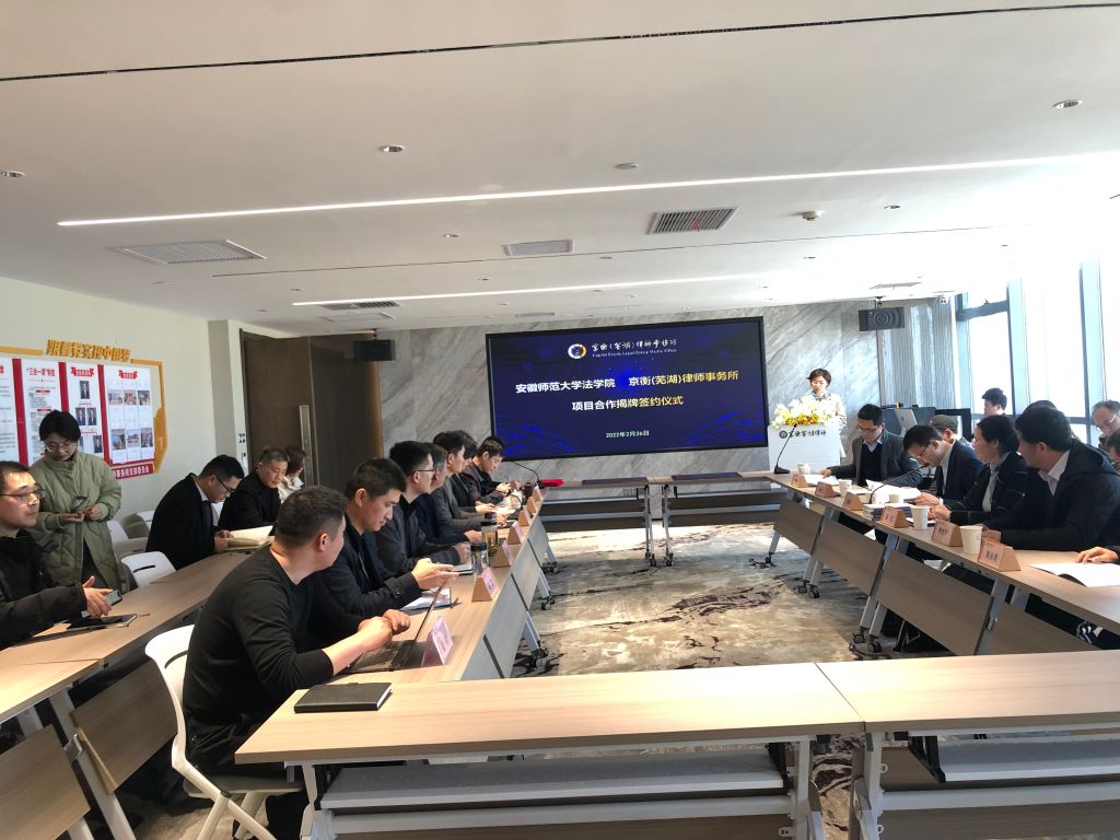 为了贯彻“质量立院、特色兴院、人才强院、开放活院”的办学理念,加强36365线路检测中心与社会的合作,2022年2月26日下午36365线路检测中心与京衡(芜湖)律师事务所在该所会议室举行项目合作揭牌签约仪式。京衡(芜湖)律师事务所主任茅红星、管委会主任潘娟、名誉主任李天亮等全体律所成员,36365线路检测中心党委书记赵红、院长周振杰、副院长徐成文、副院长高永周、副院长李光宇、院长助理陈银珠参加了此次会议。