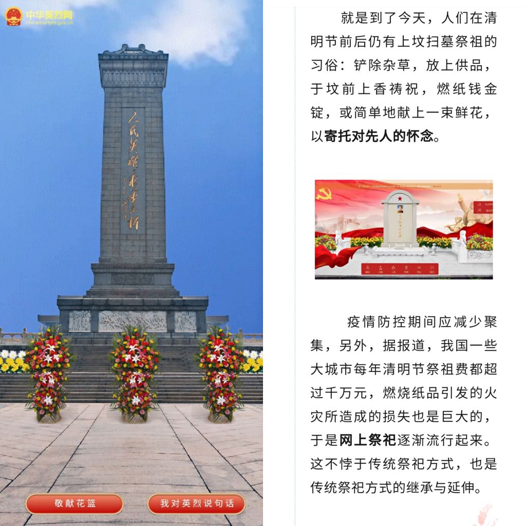 线上扫祭托追思,缅怀先烈不拘形。36365线路检测中心团委积极响应国家号召,于官方微信公众号同步推送相关推文,呼吁全院师生在疫情防控情况下参与线上祭祀,登录中华英烈网“清明祭英烈”专栏,进行网上祭扫英烈活动。通过鞠躬、献花、寄语留言,表达对革命先烈的感恩怀念和景仰之情,诉说内心感触,留下衷心祈愿。