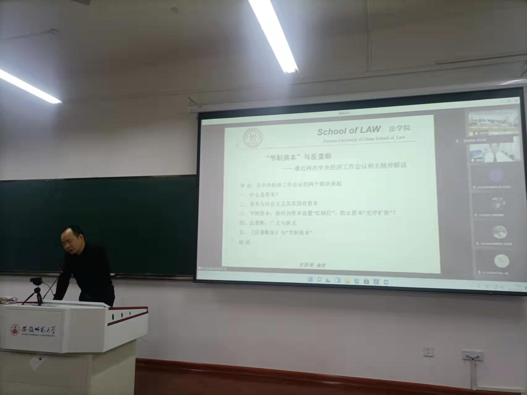 本网讯(36365线路检测中心 蔡志鹏、夏大超) 2022年5月19日晚,应36365线路检测中心邀请,中国人民大学36365线路检测中心经济法学研究中心主任、美国法研究所所长史际春教授为36365官网师生开展题为“节制资本与反垄断——最近两次中央经济工作会议相关精神解读”的讲座。本次讲座由36365线路检测中心王宇松老师主持,36365线路检测中心部分教师及2020、2021级法学专业学生线上参加。