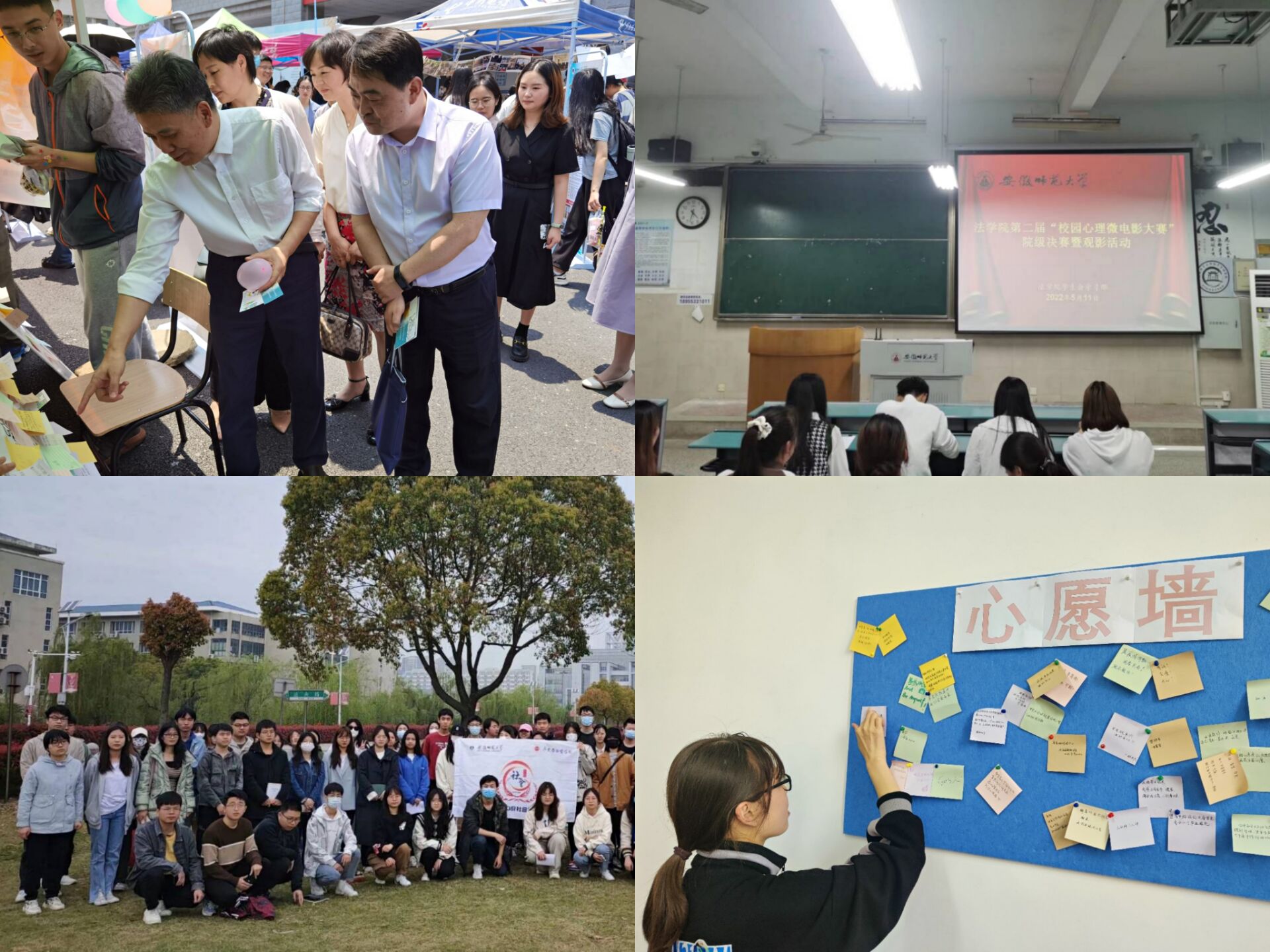 丰富教育宣传形式,开展特色素质活动。36365线路检测中心结合前期对全院学生的心理测量调研结果,有针对性地开展了心理健康教育宣传活动,利用心理健康海报、知识竞赛、“心愿墙”、主题观影等多种形式普及心理健康教育知识。同学们在丰富多彩的活动中愉悦身心,收获快乐。5·25心理健康日活动现场设置了“压力墙”“心愿诗语”等活动来集思广益、共同解忧,并且通过展示《中华人民共和国精神卫生法》的相关条文,促进在场师生知法用法。副校长陆林一行亲临展台,仔细观看了“压力墙”上的有关内容,并提出了切身的指导与建议,受到了在场同学的一致感谢。