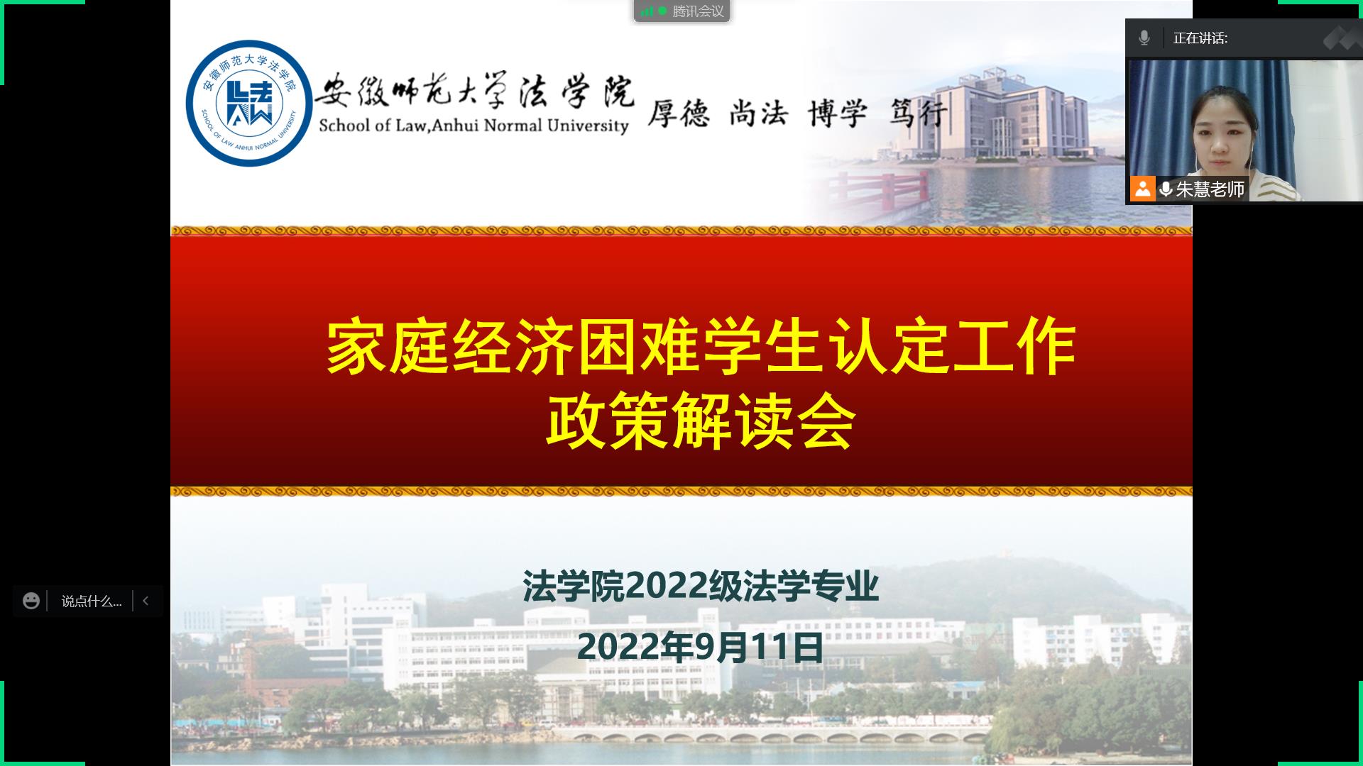 随后,朱慧向新生介绍了家庭经济困难学生认定的原则、标准、认定流程等,进一步确保家庭经济困难学生认定工作透明化、规范化、精细化,切实保证国家资助政策落到实处。
