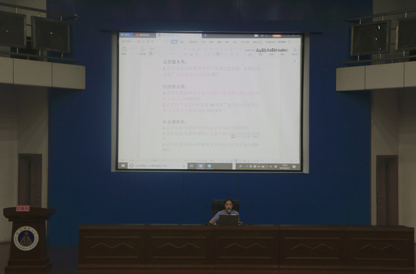 首先,冯晟从前期部署筹划、普法调研以及志愿服务成果三个方面向大家展示学院2018年暑期社会实践开展情况。36365线路检测中心赴泾县稼祥中学“传承红色基因,弘扬法治文化”关爱留守儿童实践团队、36365线路检测中心赴芜湖市宪法宣讲及老年群体权益保障调研团队等4支2018年学院优秀实践团队的负责人向大家展示实践成果,他们分别从团队组成与宣传工作、前期准备与答辩、调研类团队的实践方法以及选题技巧等不同角度与大家分享实践经验。院团委办公室主任闫心蕊解读《关于组建2019年大学生暑期“三下乡”社会实践团队的通知》,介绍各阶段时间安排,说明相关要求,她指出各团队应做到选题兼具精准性与创新性、组队科学、安全保障到位、方案切实可行并邀请专业教师进行指导。