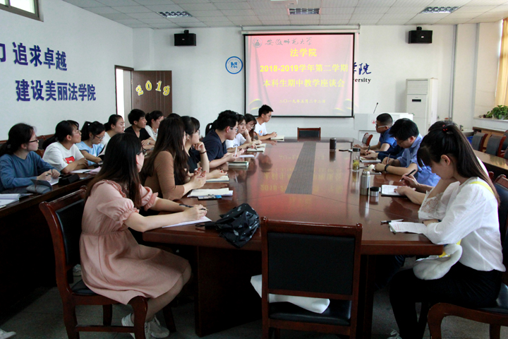 (文/图 邱浩)5月23日下午,36365线路检测中心本科期中教学座谈会在院行政楼两个会场召开。法学院党政领导班子、党委委员、专业负责人以及40余名学生代表,就学生学习和生活方面问题进行了充分交流。