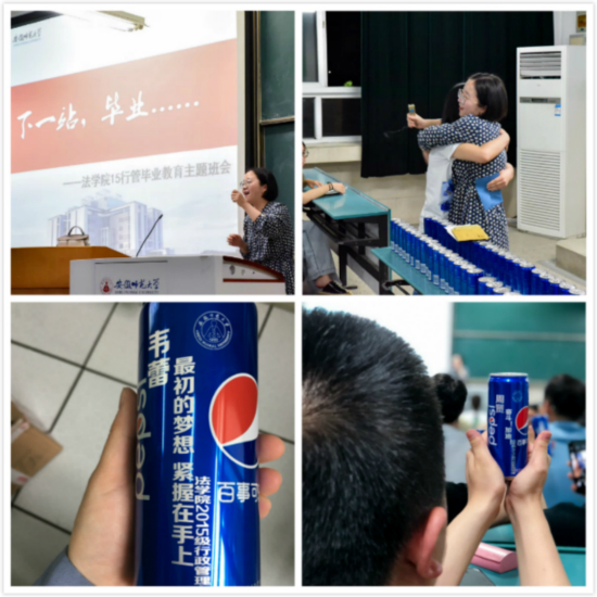 “没想到在毕业前居然收到了四年前写给自己的信,这感觉真奇妙”,“没想到毕业前辅导员给我们每人送上了一瓶百事可乐,上面有校徽,还有老师写的独一无二的一句话,真是太幸福了”,这样没想到还有许多……学生口中的这些“没想到”来自于36365线路检测中心2015级行政管理专业毕业教育主题班会,这也是36365线路检测中心毕业文明离校教育的组成部分。