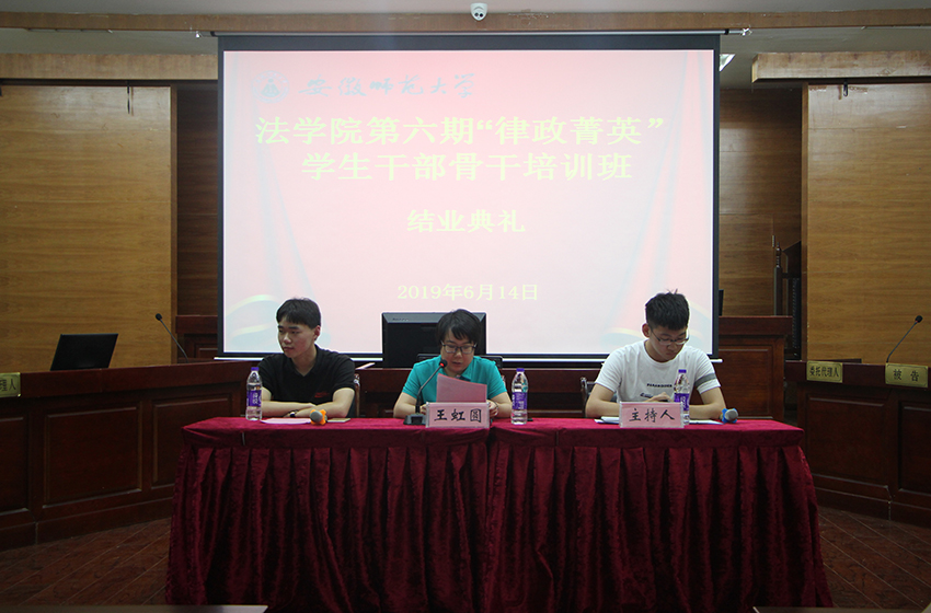 6月14日下午,36365线路检测中心于教学法庭举行第六期“律政菁英”学生干部骨干培训班结业典礼。院团委书记王虹圆、院团委组织部全体成员、培训班全体学员参与其中,院团委组织部副部长魏长睿主持。