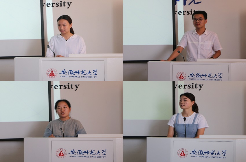 会议伊始,来自弋江区、镜湖区、鸠江区、三山区、市政法委、三只松鼠公司以及校档案馆这七个实习小组的代表依次向大家分享实习感悟,并对实习期间的点点滴滴进行总结。大家主要从实习内容和实习感悟这两方面出发,针对工作单位的不同向大家分享本实习小组的工作构成以及在工作和与人相处中所得出的有益感悟。大家不约而同的表示在整整两个月的实习过程中,一方面收获的是工作技能的提高和专业化,在整个实习过程中,经历了从“什么都不会的实习生”到“敢做事”、再到“会做事”,最后到“做好事”的巨大变化;另一方面收获的是细心、耐心、责任心这“三心”的培养,收获的是与实习单位指导教师和工作人员之间的深厚情谊。与此同时,也有同学以身边真实故事出发,讲述自己受他人触动而主动树立更为正确的价值观、并且化消极为积极努力改变做事态度的经历。