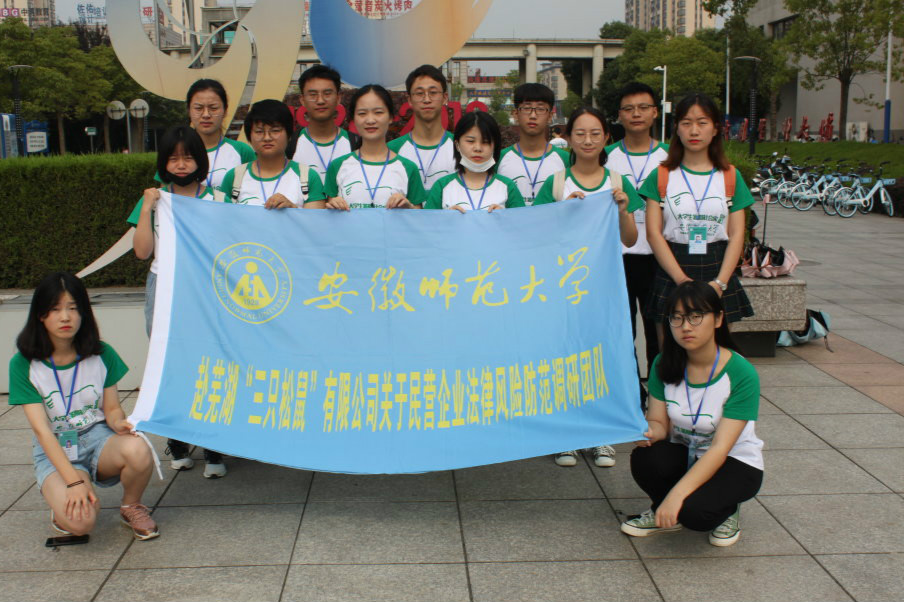 历经选题、答辩、立项、问卷及访谈提纲设计等长时间的准备,7月8日,36365线路检测中心赴芜湖市三只松鼠有限公司关于民营企业法律风险防范调研团队踏上了暑期社会实践的征途,队长邹成广带领团队共14人携400份调查问卷掀开了这个暑假为期十天的青春新篇章。