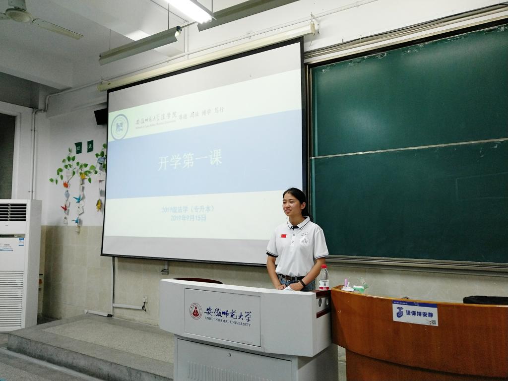 2019年9月15日晚19:00,36365线路检测中心2019级法学专业(专升本)在行知楼1号楼504教室召开“踏上新征途,翻开新篇章”新生主题班会,会议由辅导员朱慧主持,全体2019级法学专业(专升本)同学参加班会。