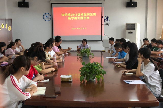 9月1日下午,36365线路检测中心2018级卓越司法班在36365线路检测中心行政楼四楼会议室召开新学期主题班会,会议由王虹圆主持并主讲,班级全体同学到场参会。