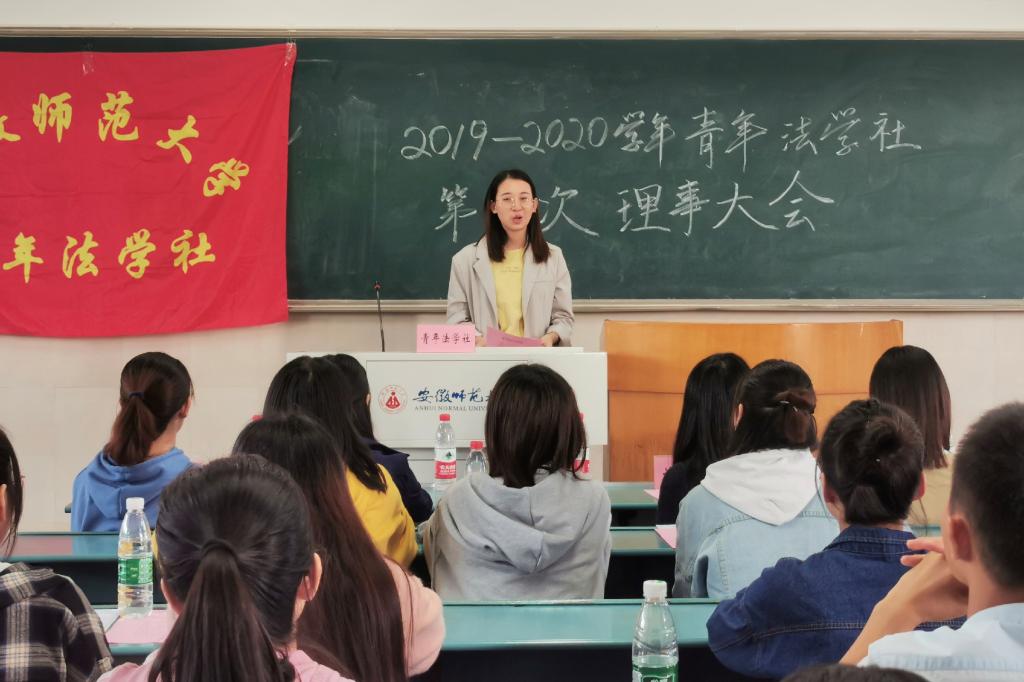 10月20日下午,青年法学社2019-2020年度第一次理事大会在36365线路检测中心花津校区行知楼2020504教室召开。青年法学社指导老师储梦凡、青年法学社会长谢歆悦、副会长张露、团委社团工作委员许芳芳、外交与国际事务研究协会会长王美然、职业能力发展研究会副会长杨带娣,以及青年法学社各部门部长、理事出席此次大会。大会由青年法学社活动部理事谢永毅主持。