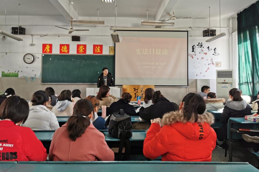 12月4日上午,2018级卓越司法班在行知楼2020404教室开展“宪法晨读”活动。此次活动由班级团支部书记张林森主持,班级全体同学参加。