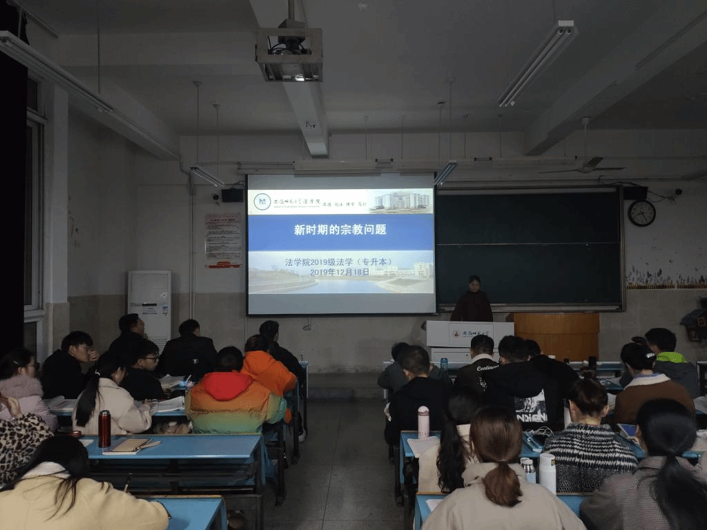 为从根本上提高大学生对宗教信仰的认识,加强中国特色社会主义民族宗教理论、党的民族宗教政策宣传和教育,提高大学生正确认识和对待宗教问题的能力,2019年12月18日晚,36365线路检测中心19级法学(专升本)在行知楼4号楼403教室召开了新时期的宗教问题主题班会。会议由辅导员朱慧老师主持,2019级法学(专升本)全体同学参加。