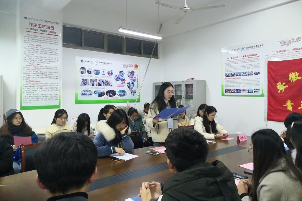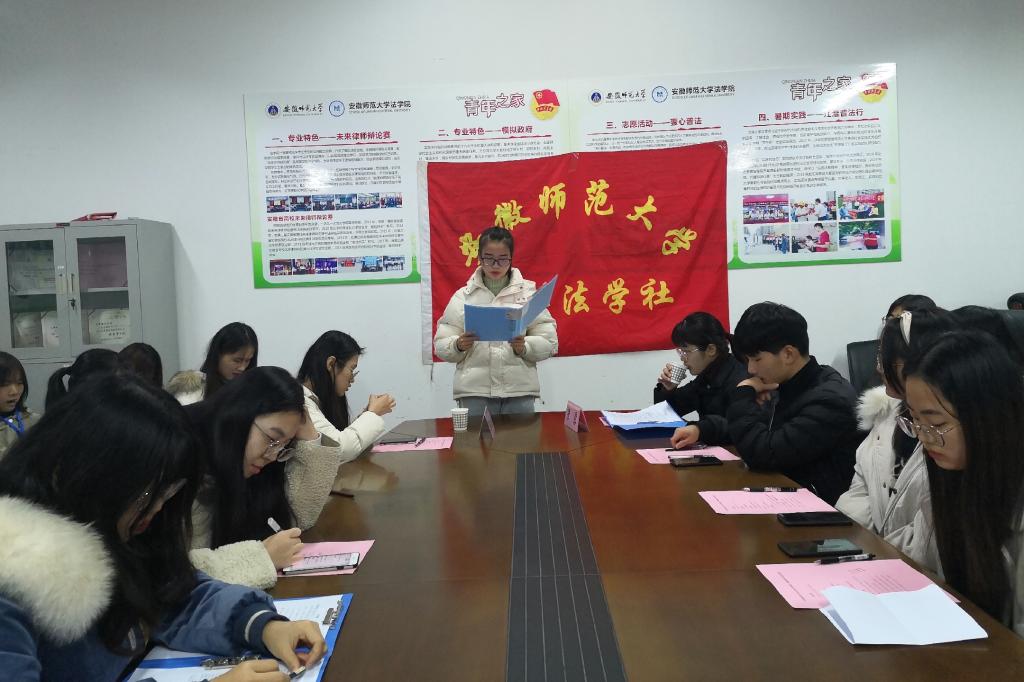 12月20日晚,青年法学社2019-2020年度期末总结大会在36365线路检测中心行政楼学生会办公室召开,会长谢歆悦、副会长张露出席,全体部长和理事参加。大会由青年法学社活动部理事朱艺辰主持。