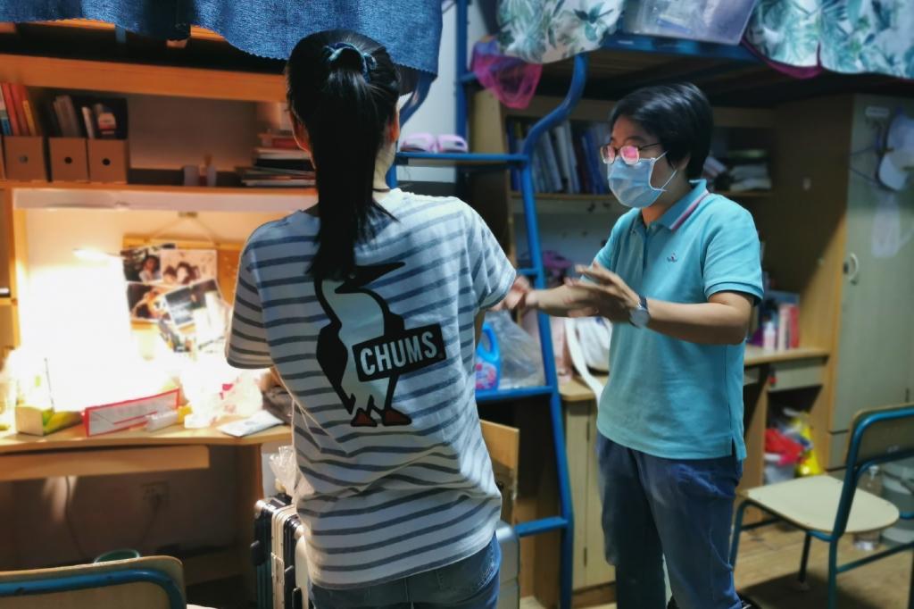 活动第三项:走进学生寝室。为进一步增强学生疫情防控的意识。王虹圆走进学生寝室,与学生进行深入交流沟通,了解学生现行忧虑与问题。