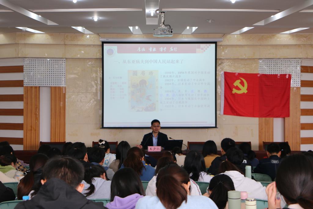王少仁以“不忘初心牢记使命——当代青年的历史使命和家国情怀”为主题,讲述了从东亚病夫到中国人民站起来了、从韬光养晦到奋发有为、从大国崛起到中华民族伟大复兴“中国梦”的历史改变。同时,他联系当前背景,从举国战疫里分析出中国社会主义制度优势。在谈到新时代青年该做什么、怎么做时,王少仁从“做人是立身之本、做事是生存之本、做学问是发展之本”三个部分讲解。他鼓励同学们作为新时代青年要“撸起袖子加油干”,毫无保留地挥洒热血和青春,做到不忘初心、坚定信念;脚踏实地、锐意进取;敢于担当、甘于奉献、砥砺前行。