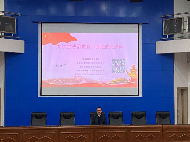 讲座上,陆在春老师首先介绍了民法典的概况与发展历程,详细叙述了民法典的修改与完善细节,同时围绕“建国前”与“建国后”的民法典发展历程进行讲解,深入了同学们对《民法典》的初步了解。在会上,陆老师着重强调了《民法典》的颁布具有重要的时代意义,标志着我国正式进入了“民法典时代”。在中国特色社会主义法律体系中具有重要地位,是一部固根本、稳预期、利长远的基础性法律,有助于推进全面依法治国、加快建设社会主义法治国家、推进国家治理体系和治理能力现代化。在讲授民法典新规亮点时,陆老师运用案例分析,结合条例内容,彰显了《民法典》的地位和特色;畅谈自身实际和学校内的趣闻轶事,举出“撵兔子”和“捡瓶子”的事例,加深了同学们对物权法的法律概念。幽默风趣的语言让法律知识直观易懂,也引发了同学们对于法律的思考,促进对法律的认知。