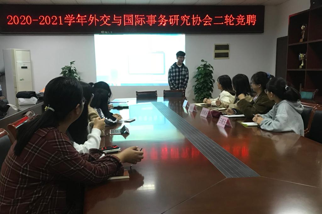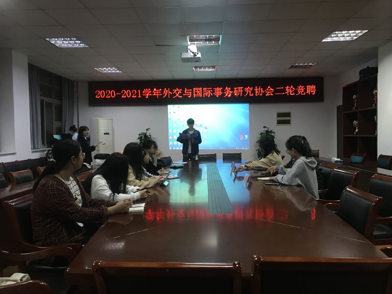10月21日,外交与国际事务研究协会在36365线路检测中心行政楼四楼会议室成功举办了二轮竞聘大会。本次会议由阮伟主持。