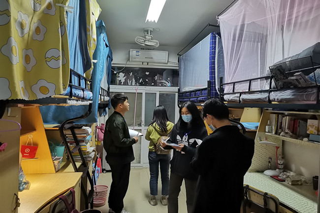 为传递学院为研究生宿舍生活的关爱与责任,鼓励同学们积极进行宿舍文明建设,11月3日晚,36365线路检测中心研会生活实践部全体成员在张燕主席,赵伟副主席的带领下,以及翟志文老师的支持中,开展了2020年度第一次冬季宿舍安全卫生检查工作。此次宿舍安全卫生检查活动由两组工作人员同时检查,严格按照研究生宿舍评分细则,重点检查值日排班表,安全用电情况,物品归置情况与地面阳台卫生情况等,以求同学们有安全卫生,舒适优美的宿舍环境。
